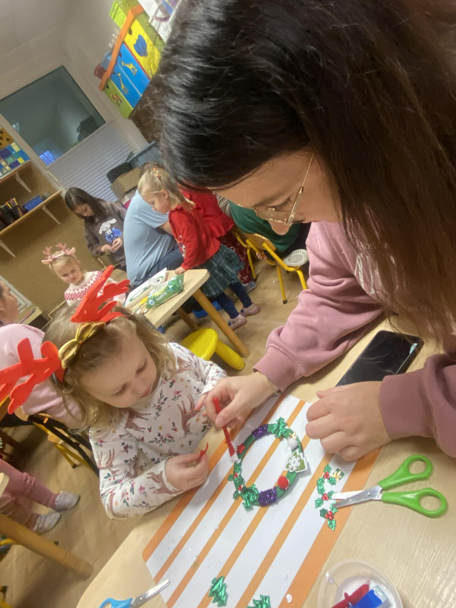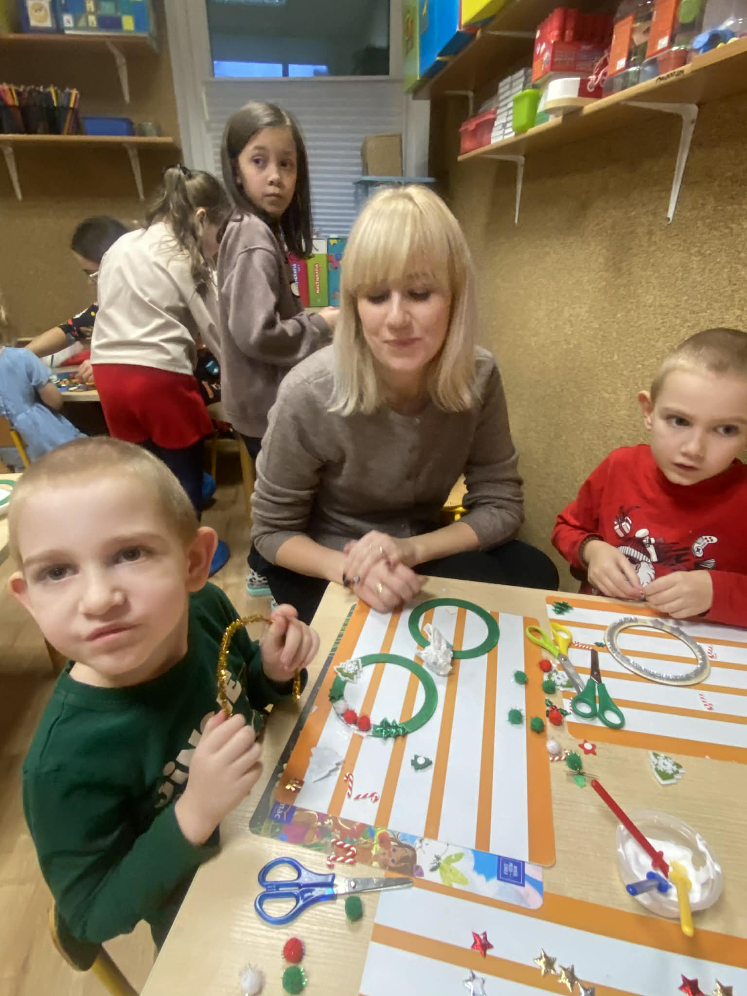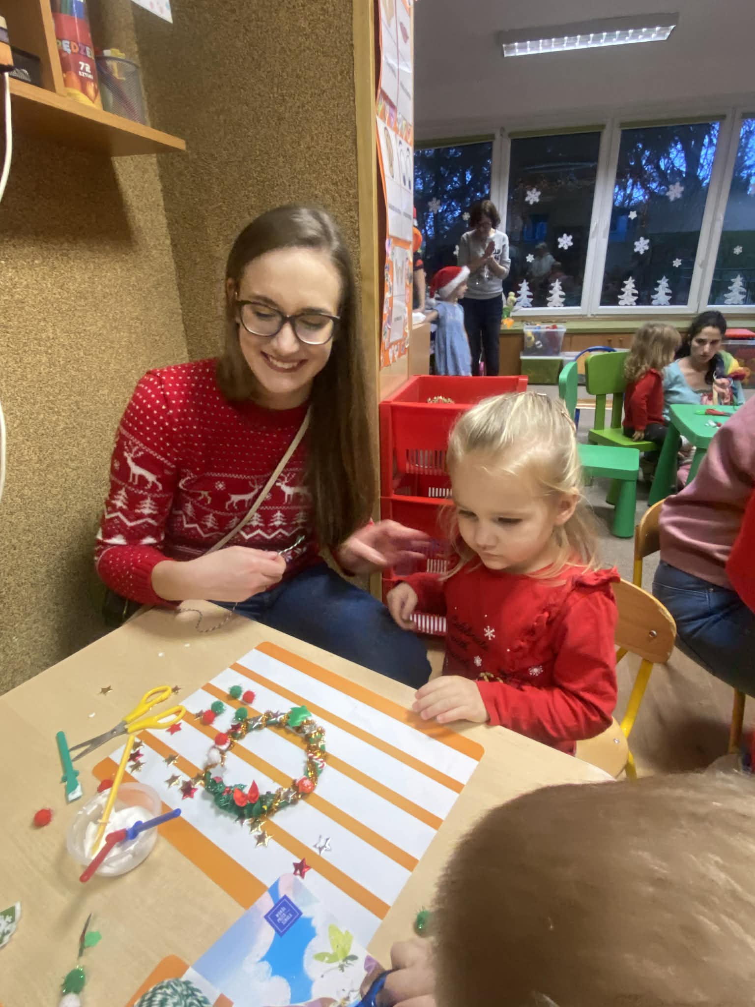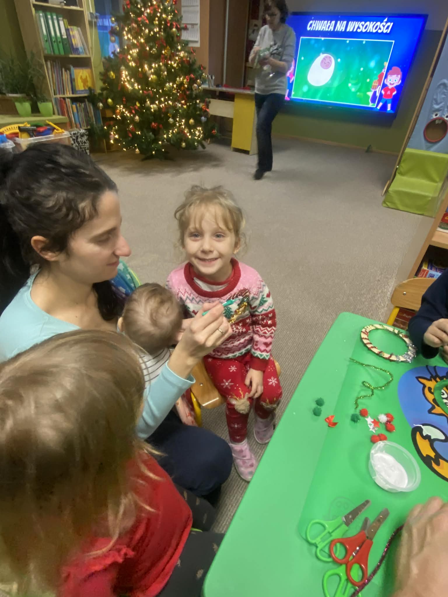 We wtorek w naszej grupie odbyło się spotkanie świąteczne. Rodzice wysłuchali świątecznych piosenek, które wprowadziły wszystkich w wyjątkowy nastrój, następnie wszyscy wspólnie wykonali piękne ozdoby bożonarodzeniowe.