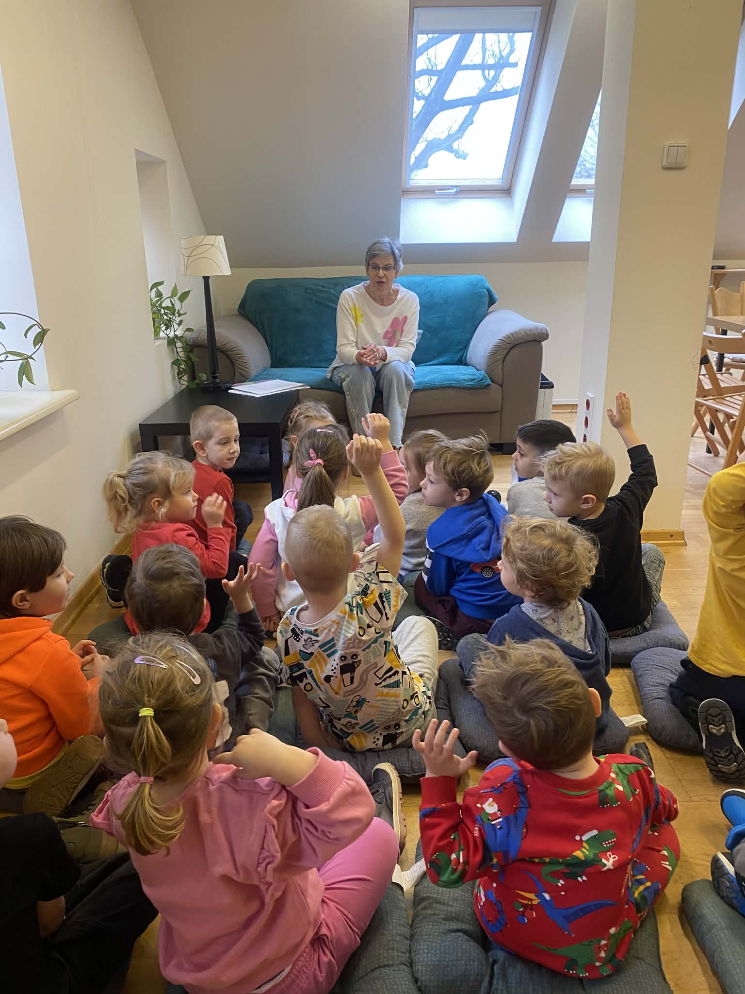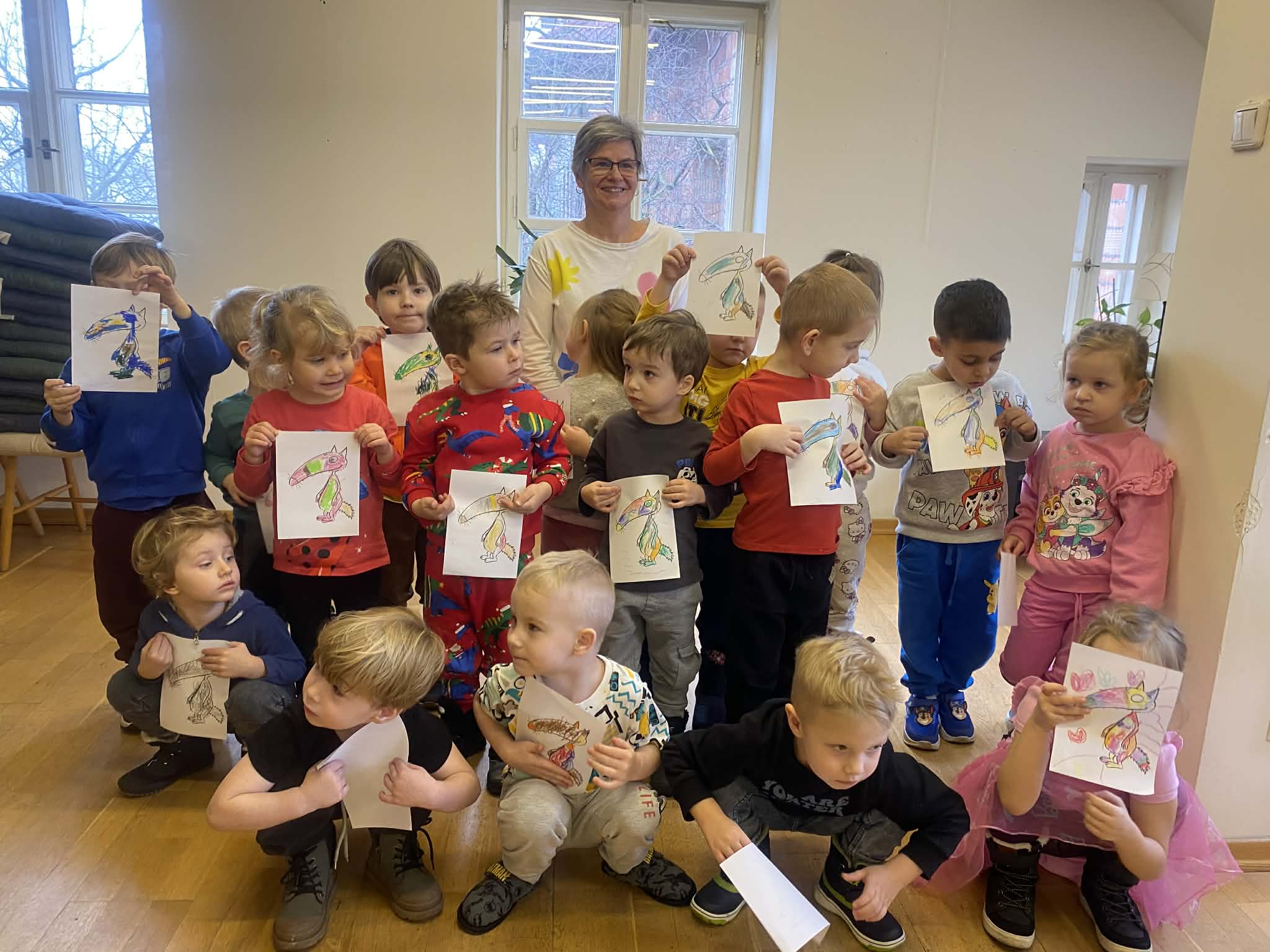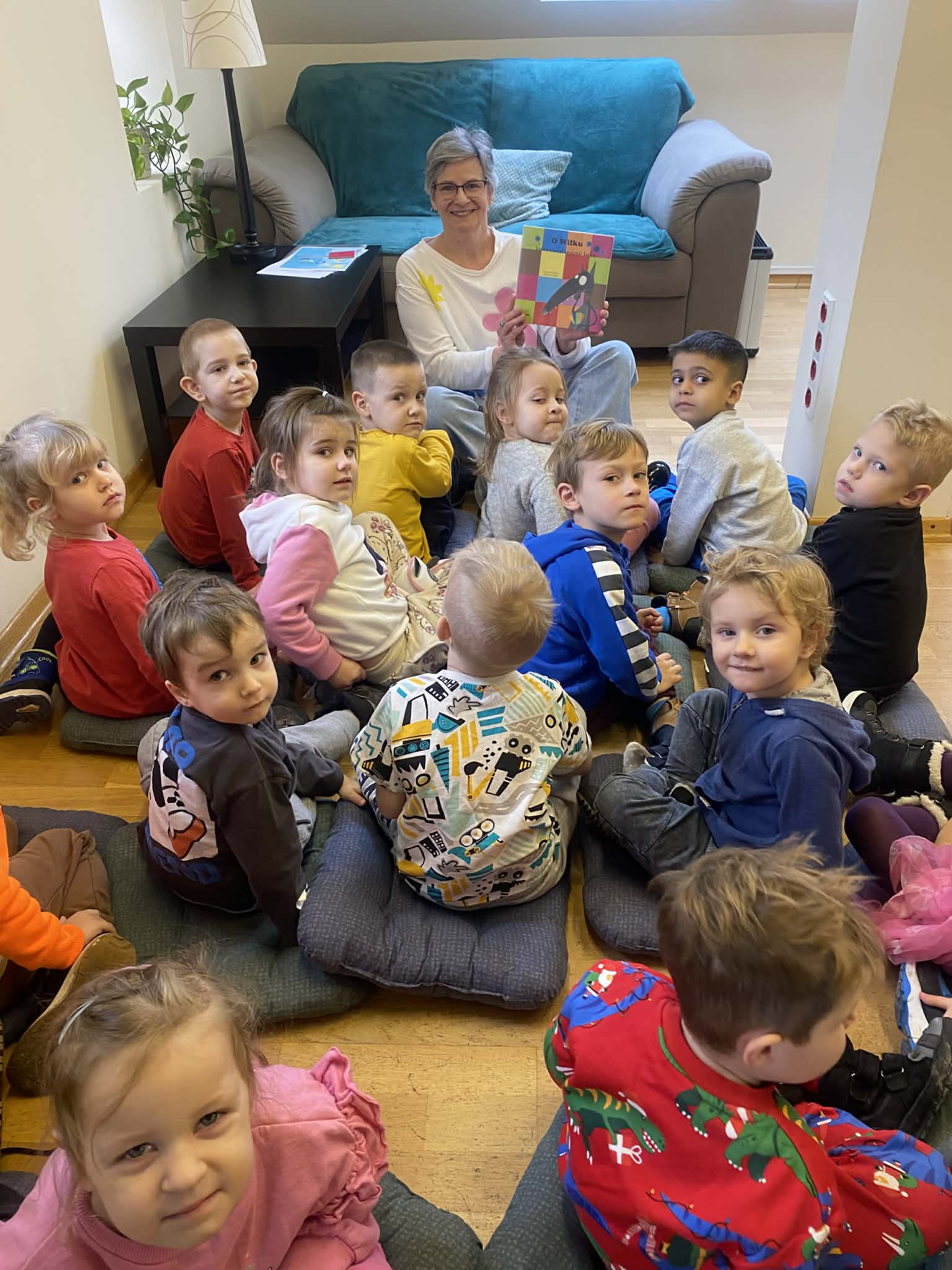 W czwartek nasza grupa odwiedziła Bibliotekę Publiczną.Tematem spotkania były kolory. Dzieci wysłuchały zabawnego opowiadania „O wilku, który chciał zmienić kolor” Oriane Lallemand, rozmawiały o kolorach tęczy, swoich ulubionych barwach i ich odcieniach.